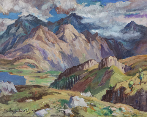 At the outbreak of the Second World War Milne returned to Scotland and settled in the hamlet of High Corrie on the isle of Arran where he remained until his death in 1957. The landscapes of the West Highlands and in particular, High Corrie, constitute the bulk of the work of his maturity.Milne painted in a light and broad manner reflecting the influence of the Colourists and van Gogh, especially in his flower paintings. Milne was elected ARSA in 1934 and RSA in 1938. From 1912 to 1954 he exhibited annually at the Royal Scottish Academy, except during the First World War years. His work was also exhibited at the Glasgow Institute and in London (Reid and Lefevre, 1929) and in New York (N.Y.World Fair, 1939).
