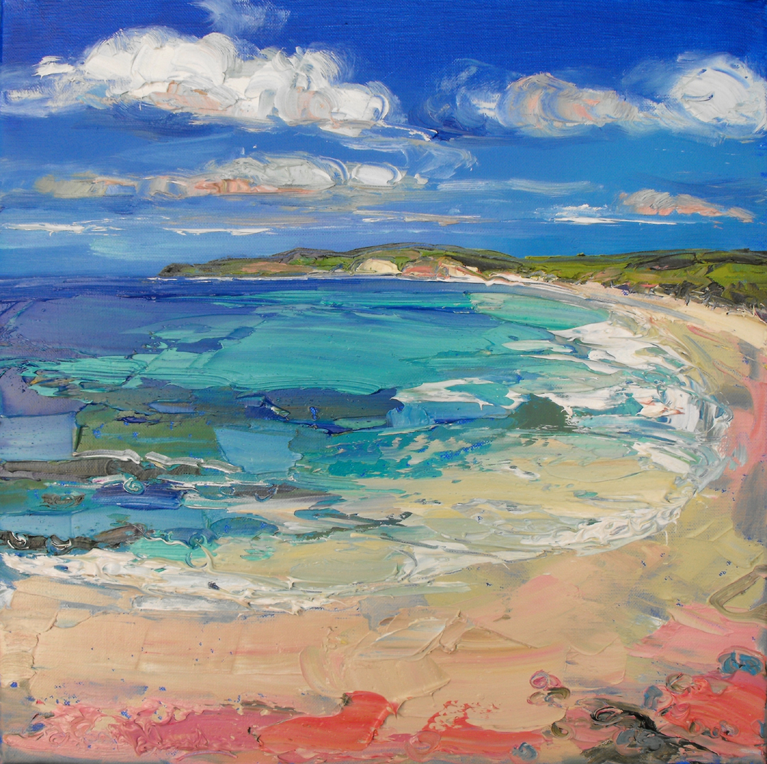 Judith I Bridgland was born in Australia, and studied at the University of Glasgow, where she gained an Honours degree in History of Fine Art and English Literature. A member of the Paisley Art Institute and winner of the prestigious MacRoberts Open Prize in 1999, Judith's work is collected world wide in both private and public collections, being owned by Universities such as Strathclyde and Glasgow Caledonian, and companies such as British Midland and the Royal Bank of Scotland. She has exhibited successfully at home, and abroad in St. Petersburg, Russia and Philadelphia, U.S.A. Judith's work is strongly based in the Scottish landscape tradition. She uses bold colours and strong rhythmical compositions to communicate the strength and vitality of the natural landscape. Her paintings are full of tension, contrast and balance: contrasts of colour; contrasts of natural, organic shapes with abstract geometric ones; contrasts of areas of flat colour with areas of delicate detail; of thick impasto with thin washes of underpainting. Her paintings are intended both as records of actual very specific places, times of day and seasons of the year, as well as being about something more personal, where landscapes becomes metaphors, and conjure up an emotional feeling.